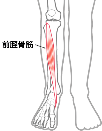 歩くときにつま先を持ち上げるクセがあると、スネの筋肉(前脛骨筋)が常に働きすぎて疲れます。