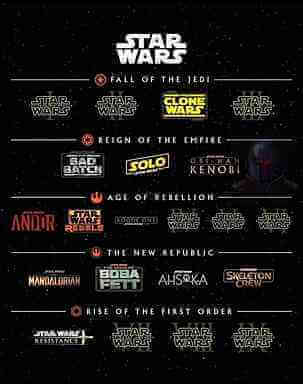 ちなみにコチラが「スター・ウォーズ」の時系列ですが、見る順番は公開順で大丈夫です。
