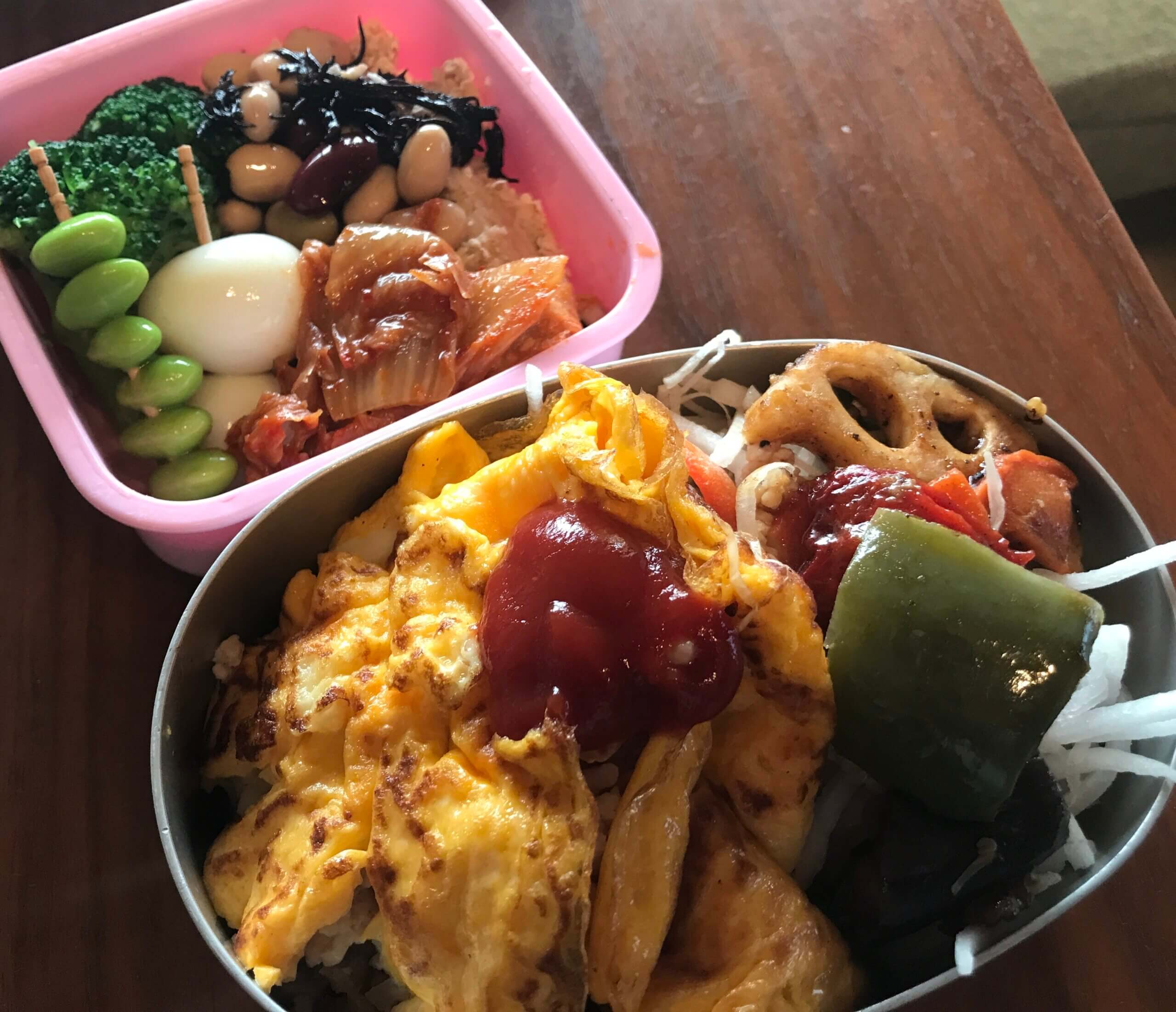 この条件を守れば見た目はどうでもいい、ということで作り始めたお弁当がコチラです。