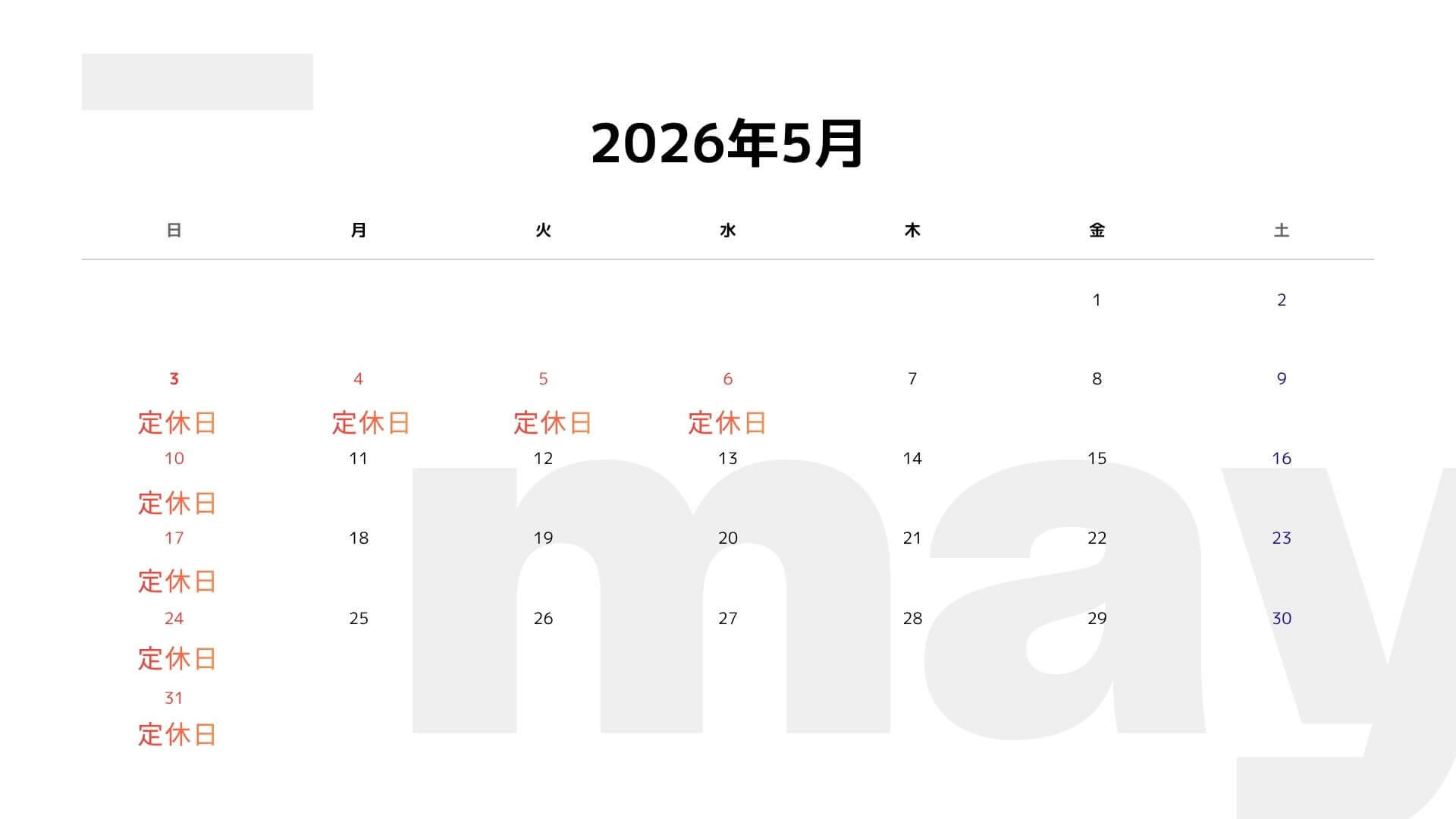 5月は息子の学校行事や商店街の集会で日中にお休みするところもあるかもしれません。連休前は混みあいやすくなるので予定がお分かりでしたら、お早目の予約がおすすめです。